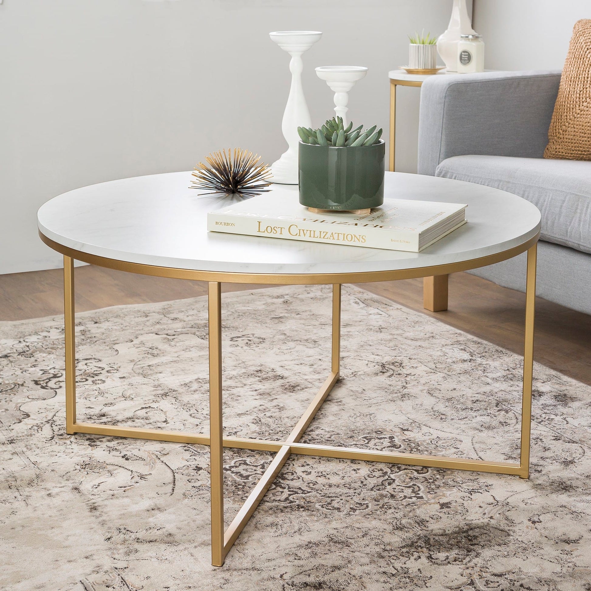 Masa Cafea Rotunda Gold Marble Baza X cu Ø 85 cm